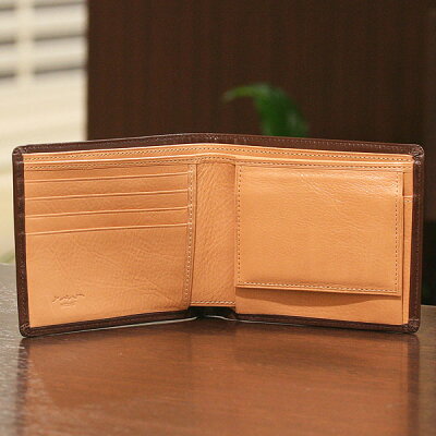 【バンビ】松阪牛 さとりナチュラル 二つ折り財布 ダークブラウン 日本製