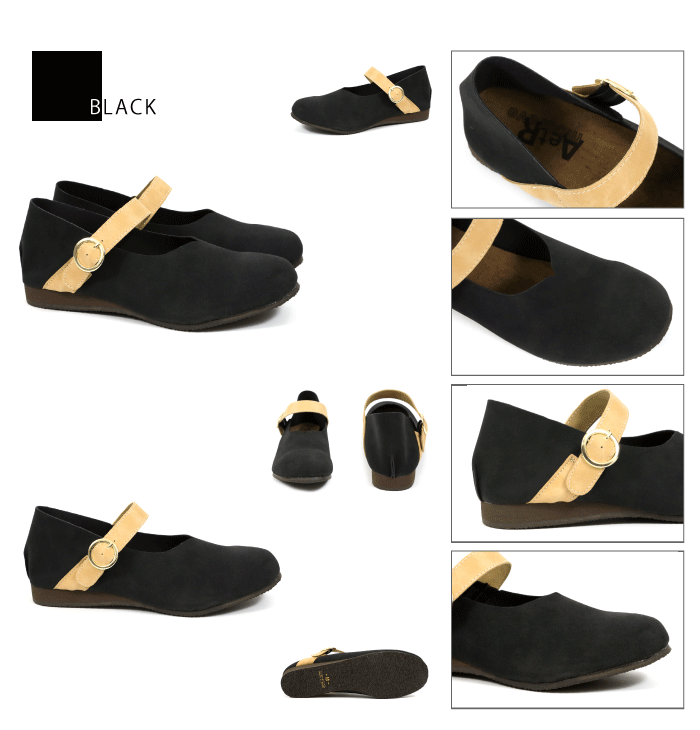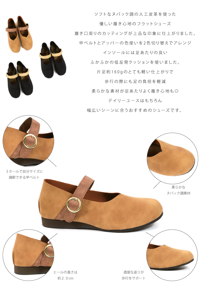 フラットシューズ レディース ヌバック調 やわらか 低反発 インソール ベルト カジュアル [ar4129]