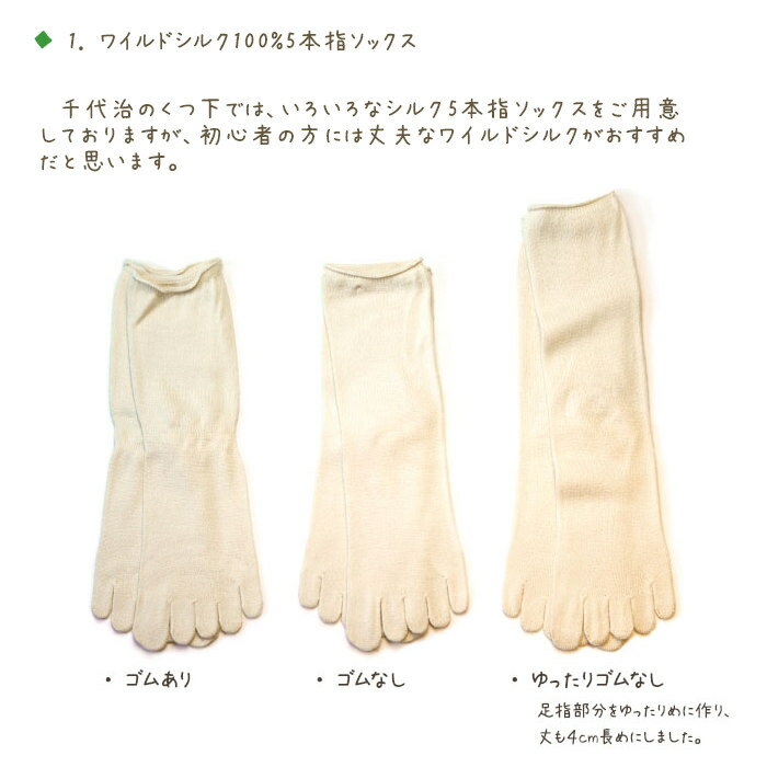 シルクカラーレギンスと合わせて、おしゃれに冷えとり健康生活スタート!素材 シルク商品:シルク100% ウール商品:ウール100% サイズ 22-24cm 色 シルク商品:生成り ウール100%5本指ソックス:ベージュ・インディゴ・杢グレー ウール100%ソックス:ベージュ・インディゴ・杢グレー・こげ茶・赤 製造 日本・千代田繊維工業株式会社 注意 画面上と実物では多少色具合が異なって見える場合もございます。